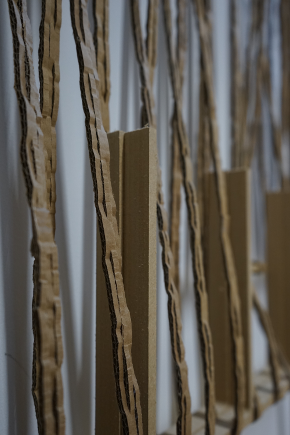 after cutting new cardboard lines, we join and weave them together, creating textures, rhythms, and dialogues.