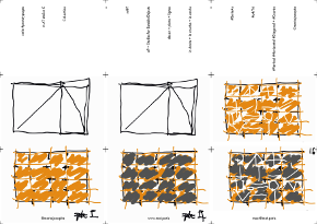 m@T(able) #Tableau01 is also a result - revealing: matter(s); working needs and memories; module drawing; no-loss research; rhythms; … becoming itself an object with assumed identity, a negative, a graphic, a game...
