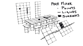 m@T(able) #Tableau01 is also a result - revealing: matter(s); working needs and memories; module drawing; no-loss research; rhythms; … becoming itself an object with assumed identity, a negative, a graphic, a game...