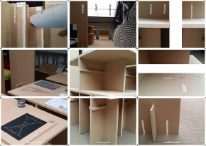 this work is (like everything) a #ReObject, existing by giving new lifes to existent matters. with a need of no loss, m@T + HAIKO, shared some #matters. 3 negative panels, part of m@T(able) matter were attached and explored adding leftover HAIKO cutted cardboard.