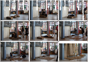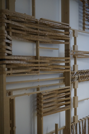 after cutting new cardboard lines, we join and weave them together, creating textures, rhythms, and dialogues.