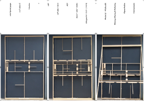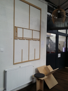 this work is (like everything) a #ReObject, existing by giving new lifes to existent matters. with a need of no loss, m@T + HAIKO, shared some #matters. 3 negative panels, part of m@T(able) matter were attached and explored adding leftover HAIKO cutted cardboard.