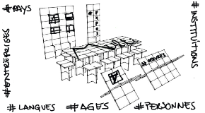 les thèmes peuvent être proposés par m@T ou par le client; le public peut correspondre à différents groupes d'âge, ou être multigénérationel; les ateliers peuvent se dérouler dans les installations de m@T, ou à l'extérieur, en français, en portugais, ou en anglais. |